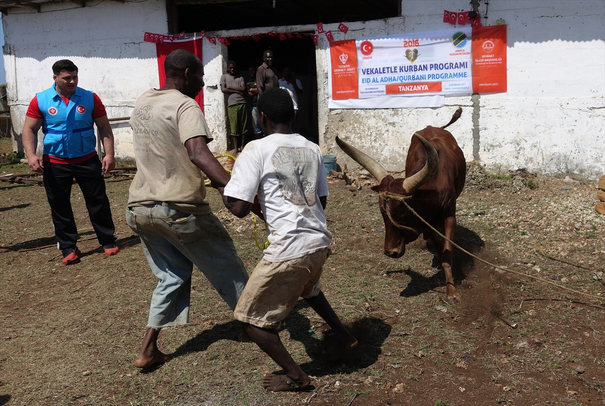 ZANZİBAR (AA) - Cumhurbaşkanı Recep Tayyip Erdoğan'ın Türkiye Diyanet Vakfına (TDV) vekalet verdiği kurban Tanzanya’ya bağlı özerk Zanzibar Adası'nda kesildi.