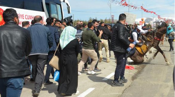 Kısa bir süre otobüsü durdurarak bekleyenlere oyuncak atan Cumhurbaşkanı Erdoğan'ın aracına atlı ciritçiler eskortluk yapmak istedi. Bu sırada çıkan izdihamda atlar yere düşerken, bazı ciritçiler de hafif şekilde yaralandı. Cumhurbaşkanı Erdoğan'ın Erzurum programı sebebiyle kentte olağanüstü tedbirler alındı. Polis helikopteri, kent üzerinde sürekli uçuş yaptı.