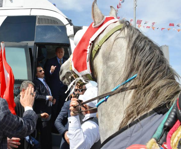 Cumhurbaşkanı Recep Tayyip Erdoğan'a şehir merkezine girişte bir grup atlı Erzurum Teknik Üniversite Kavşağı'nda Erdoğan'a sevgi gösterisinde bulundu. 2011 yılında yapılan 25'inci Dünya Üniversiteler Kış Oyunlarının açılışı törenine beyaz atıyla katılan 89 yaşındaki Baki Bayraktutan da yine atıyla Erdoğan'ı karşılayanlar arasında yer aldı.