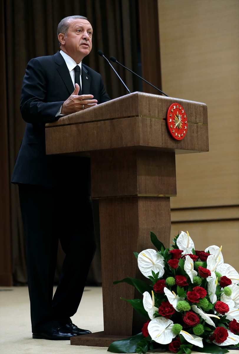 İftar öncesinde muhtarlara hitap eden Erdoğan, "Yeni Türkiye'nin inşası yolunda adım adım ilerliyoruz, 2023 hedeflerimizi birer birer hayata geçiriyoruz. Dünyadaki tüm mağdurların, mazlumların her geçen gün daha güçlü sesi haline geliyoruz. Şunu bilin, dünyada mazlumlar, mağdurlar Türkiye'nin sesini bekliyor, sizi bekliyor, bizi bekliyor." diye konuştu.