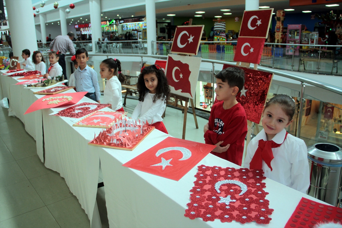 Elazığ Belediyesi ve Ayyıldız Anaokulu tarafından kentteki bir alışveriş merkezinde düzenlenen yarışmada minik öğrenciler, velilerinin yardımıyla süsledikleri Türk bayraklarıyla birbirinden ilginç eserler ortaya çıkardı.