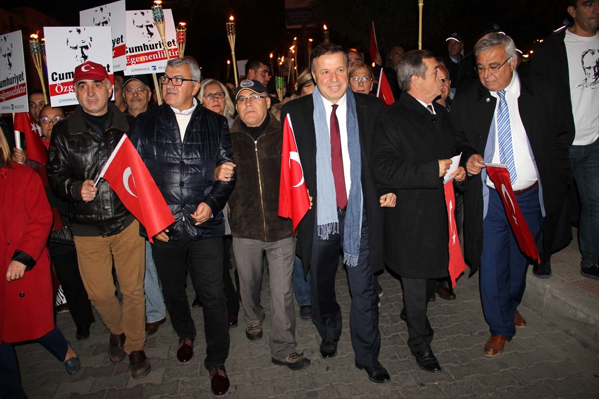 Çanakkale Belediyesi tarafından düzenlenen yürüyüş, Cumhuriyet Meydanı'nda başladı. Türk bayrakları, Atatürk posterleri ve fener taşıyan grup, İnönü Caddesi ve Kordon Boyu'ndan yürüyerek Morabbin Parkı'na ulaştı.