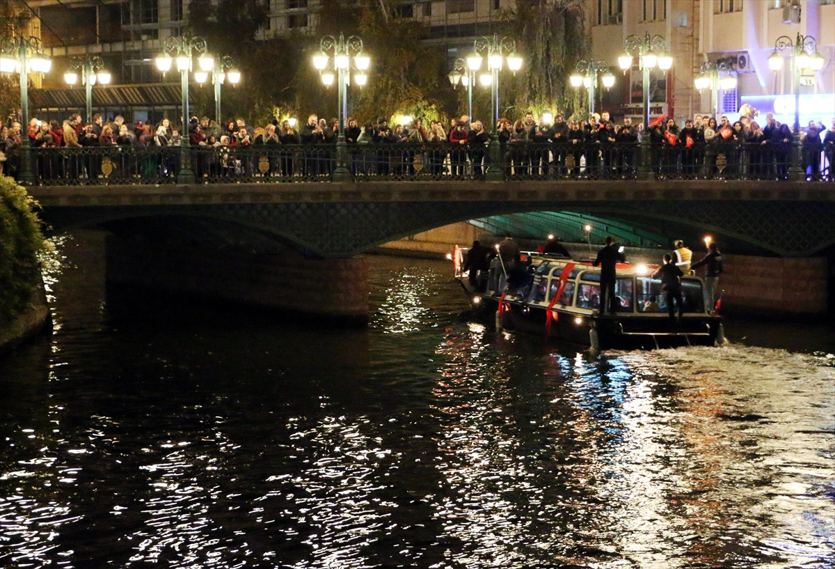 Porsuk Çayı kıyısında gerçekleştirilen fener alayına, vatandaşlar ellerindeki Türk bayrakları ve cep telefonlarının ışıklarıyla eşlik etti. Etkinliğe çay üzerinden 3 bot da katıldı.