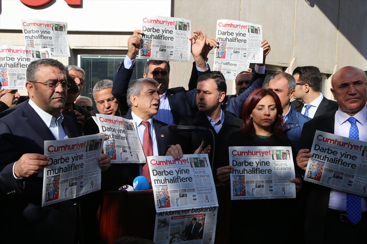 "Cumhuriyet gazetesinin kapanmasına müsaade etmeyeceğiz. Buradaki esas amaç, Cumhuriyet gazetesini kayyuma teslim etmektir. Cumhuriyet gazetesini kayyuma teslim ettirmeyeceğiz. Cumhuriyet gazetesinin susturulması halinde geriye tek muhalif yayın organı Sözcü gazetesi kalacak. Bunun arkasından buraya yöneleceğini biliyoruz. Bunun amacı muhalefetin sesini kısmaktır. Bunun altında yatan gerçek de muhalefetsiz bir şekilde başkanlık sistemine gitmektir."