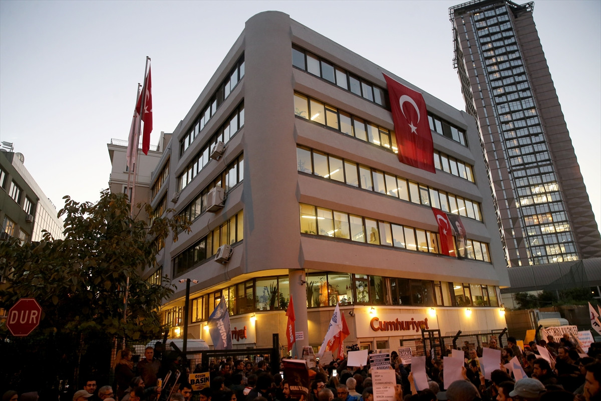 İSTANBUL (AA) - Bazı sendika ve sivil toplum kuruşlarının üyeleri, Cumhuriyet gazetesinin yönetici ve yazarlarına yönelik soruşturmayı protesto etti.