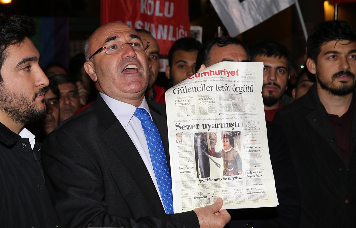 Şişli'deki gazete binası önüne gelen CHP İstanbul Milletvekilleri Mahmut Tanal ve Barış Yarkadaş ile partili bir grup, soruşturmaya tepki gösterdi.