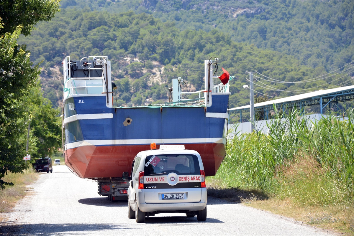 Balıkesir'in Cunda Adası'ndaki tersanede yapımı tamamlanan, yaklaşık 200 bin liraya mal olan arabalı feribot, karayoluyla 2 günde Dalyan'a getirildi.