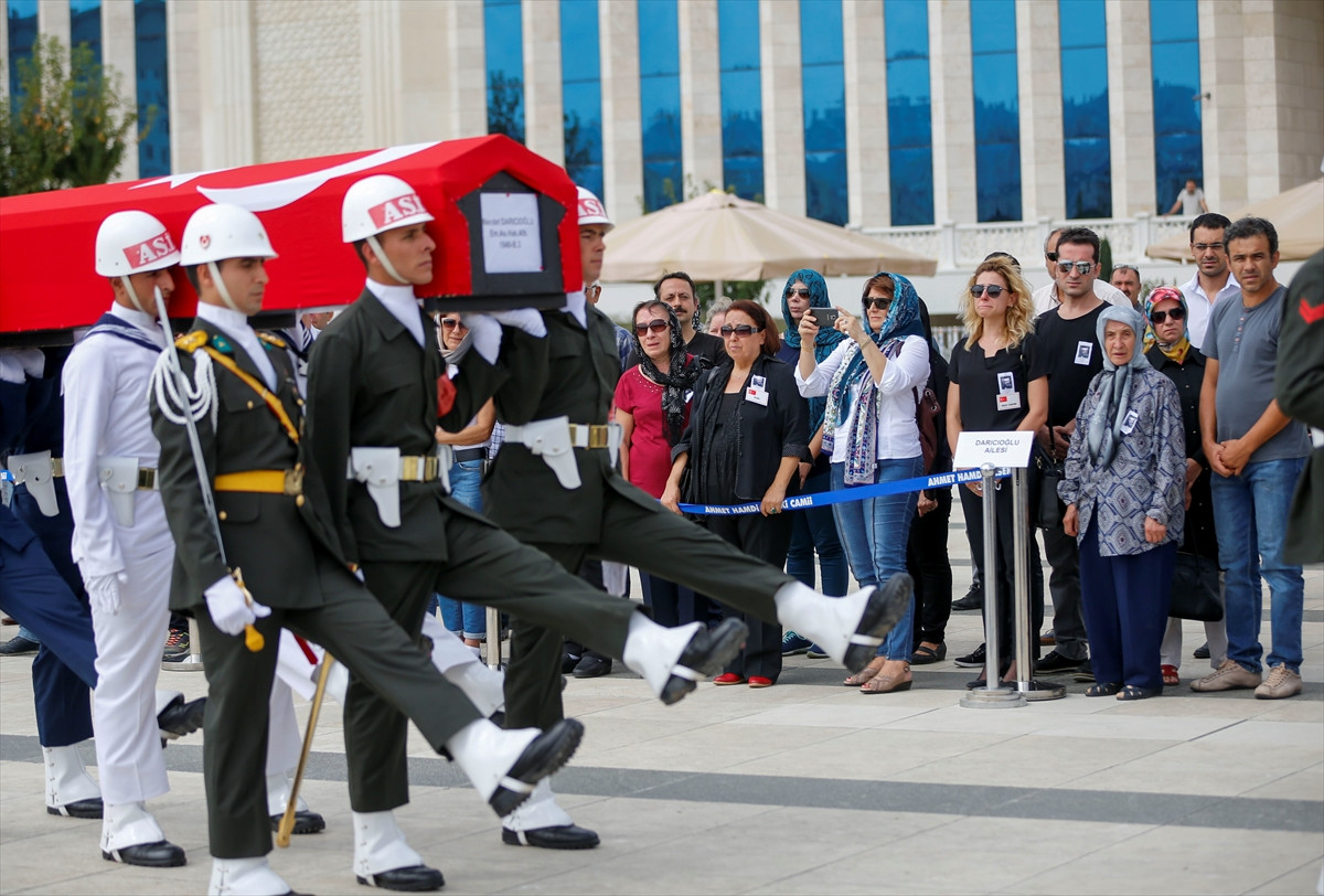 Ahmet Hamdi Akseki Camisi'ndeki törene, Darıcıoğlu'nun kızı Ümit Atlı, kardeşi Haluk Darıcıoğlu, ailesi ve yakınlarının yanı sıra Ankara Merkez Komutanı Tuğgeneral Oğuz Tozak, eski Anayasa Mahkemesi Başkan Vekili Güven Dinçer ile bazı askeri yetkililer katıldı.