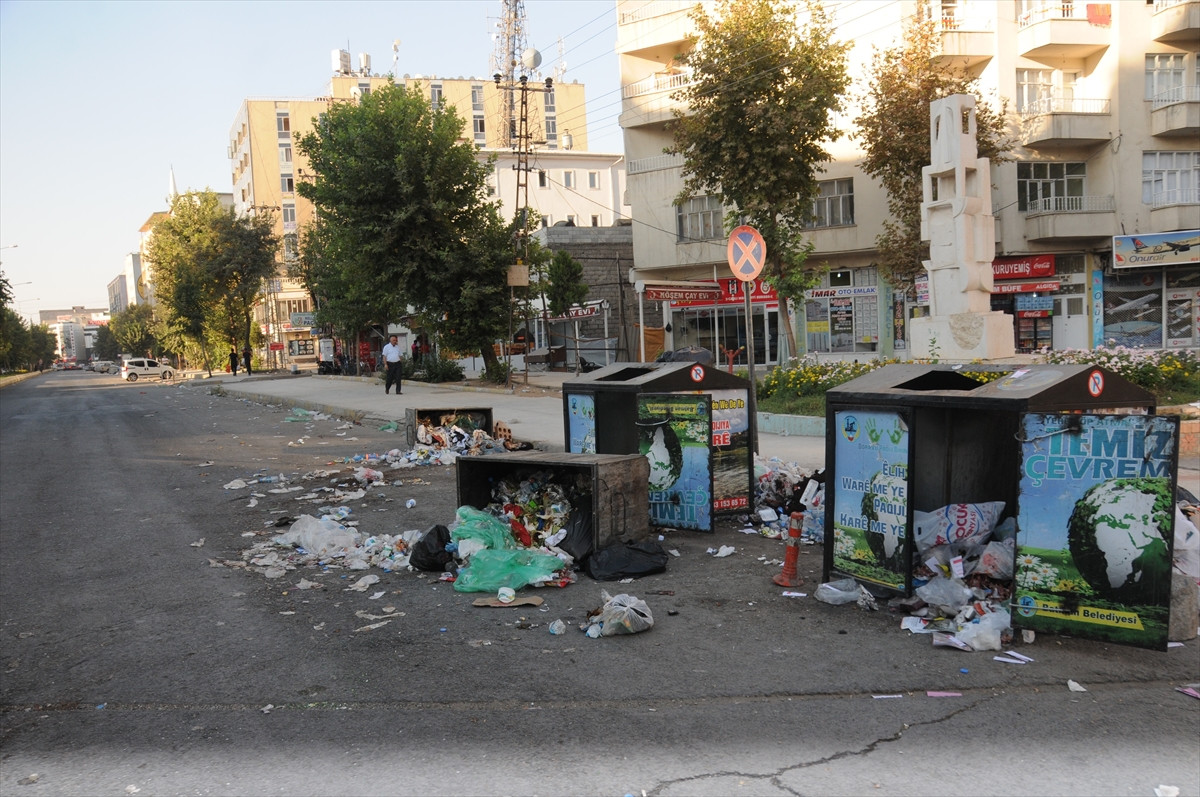 BATMAN (AA) - İçişleri Bakanlığınca Batman Belediyesine yapılan görevlendirmenin ardından DBP'li belediye yöneticilerince belediye hizmetlerinin engellenmesi üzerine sokaklarda biriken çöpleri, İl Özel İdaresi ve Karayolları ekipleri topluyor.