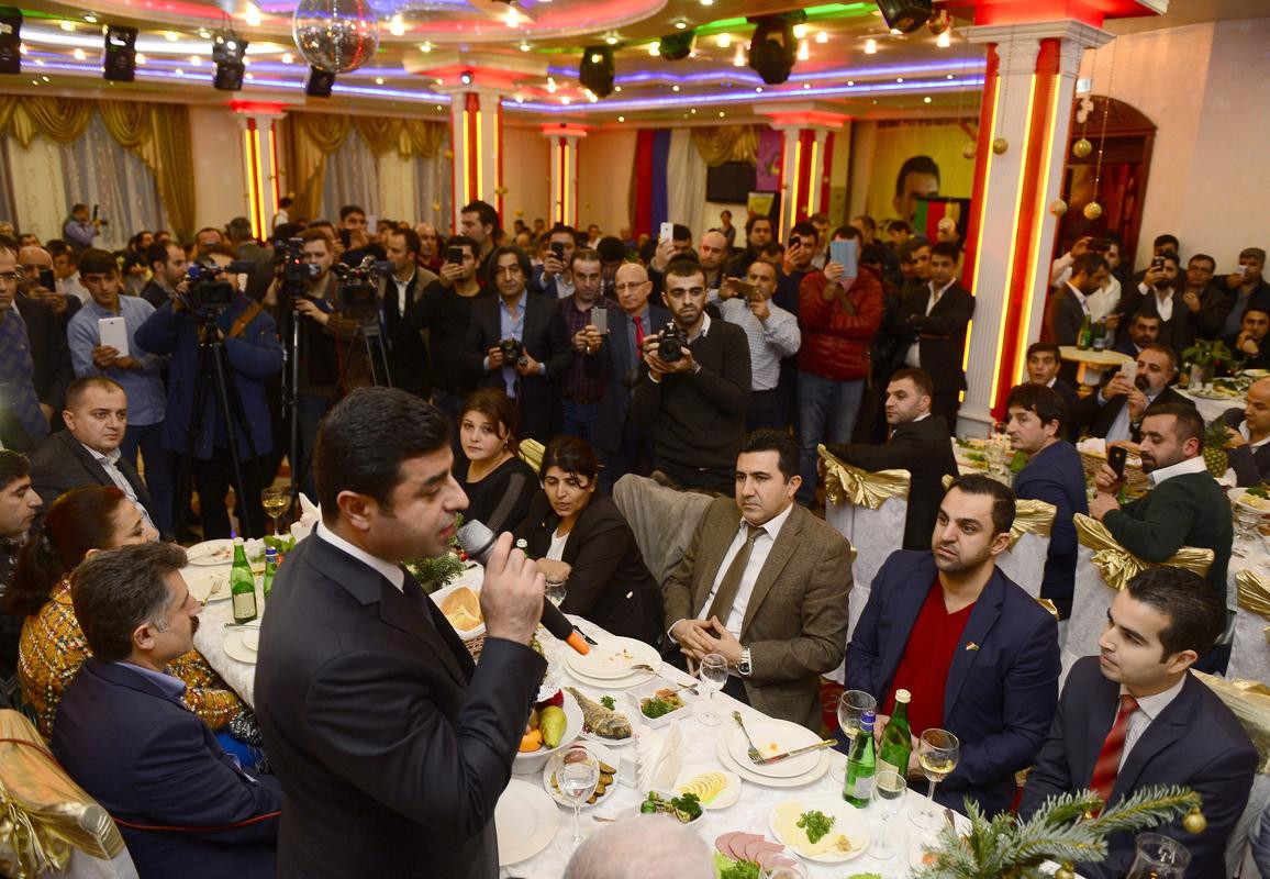 Derneğin açılışında, Abdullah Öcalan lehine atılan Kürtçe sloganlarla karşılanan Demirtaş, daha sonra, Öcalan posteri ve terör örgütü PKK'nın Suriye'deki uzantısı PYD'nin silahlı kanadı YPG'nin simgelerinin bulunduğu salonda konuşma yaptı.