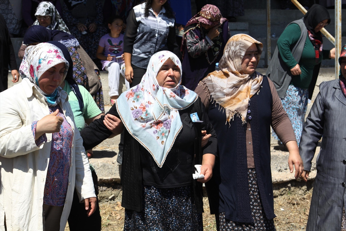 Şehit polis memuru Gülhan'ın cenazesi, Eldivan Devlet Hastanesi morgundan alınarak belediyenin spor sahasındaki tören alanına getirildi. Şehit polis memurunun yakınları, tabuta sarılarak gözyaşı döktü.