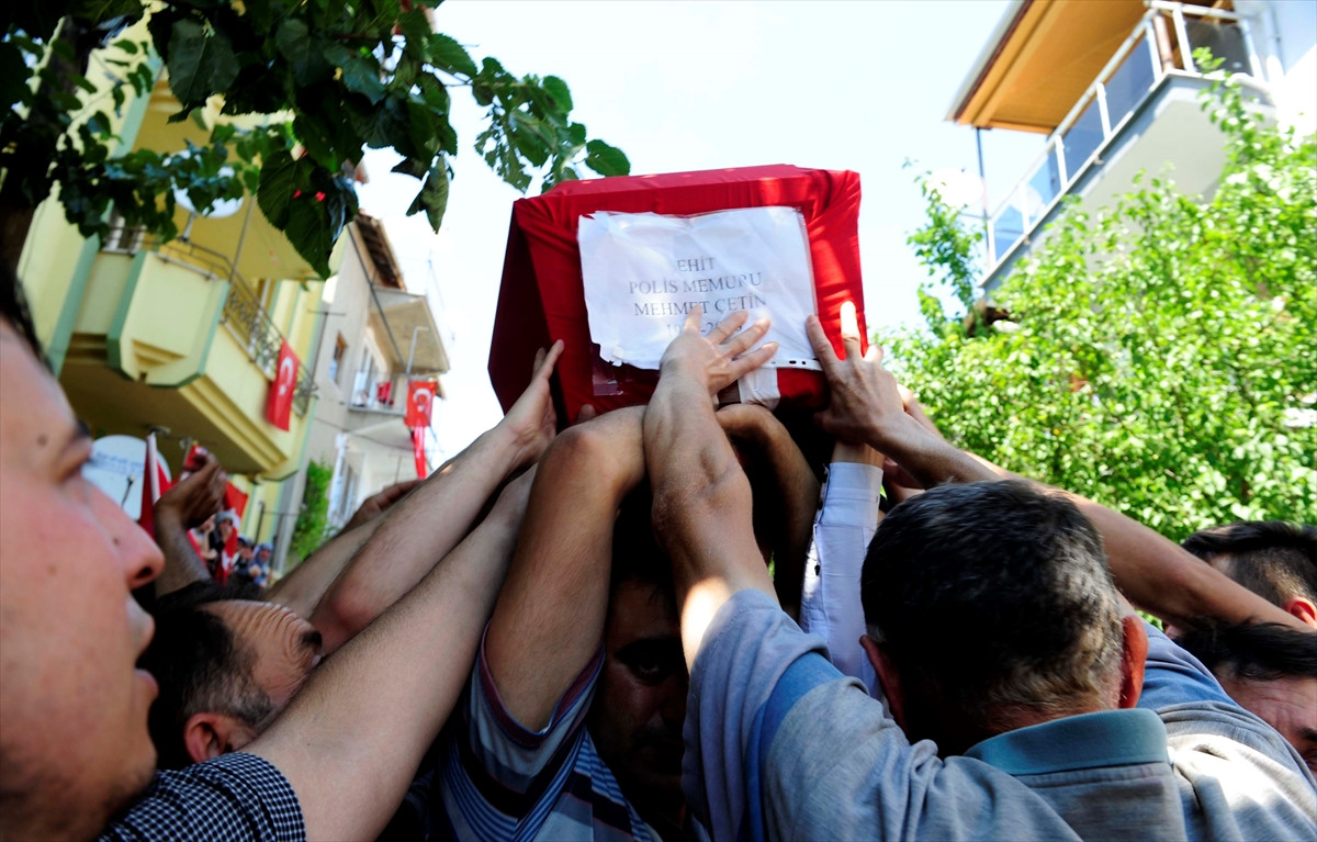 Cumhurbaşkanlığı koruma polisi evli ve iki çocuk babası Mehmet Çetin, önceki gün FETÖ'nün darbe girişimi sırasında Marmaris ilçesinde Cumhurbaşkanı Erdoğan'ın konakladığı otele yapılan saldırıda ağır yaralanmış, kaldırıldığı hastanede şehit düşmüştü.