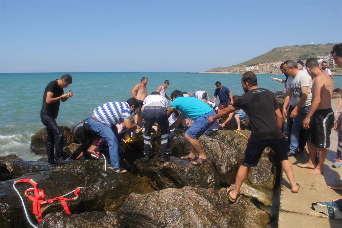 SİNOP (AA) - Sinop'ta, Kumkapı sahilinde serinlemek için girdikleri denizde akıntıya kapılan 2 kadın ve bir çocuk yaklaşık 20 dakikalık çalışmanın ardından sağ kurtarıldı.