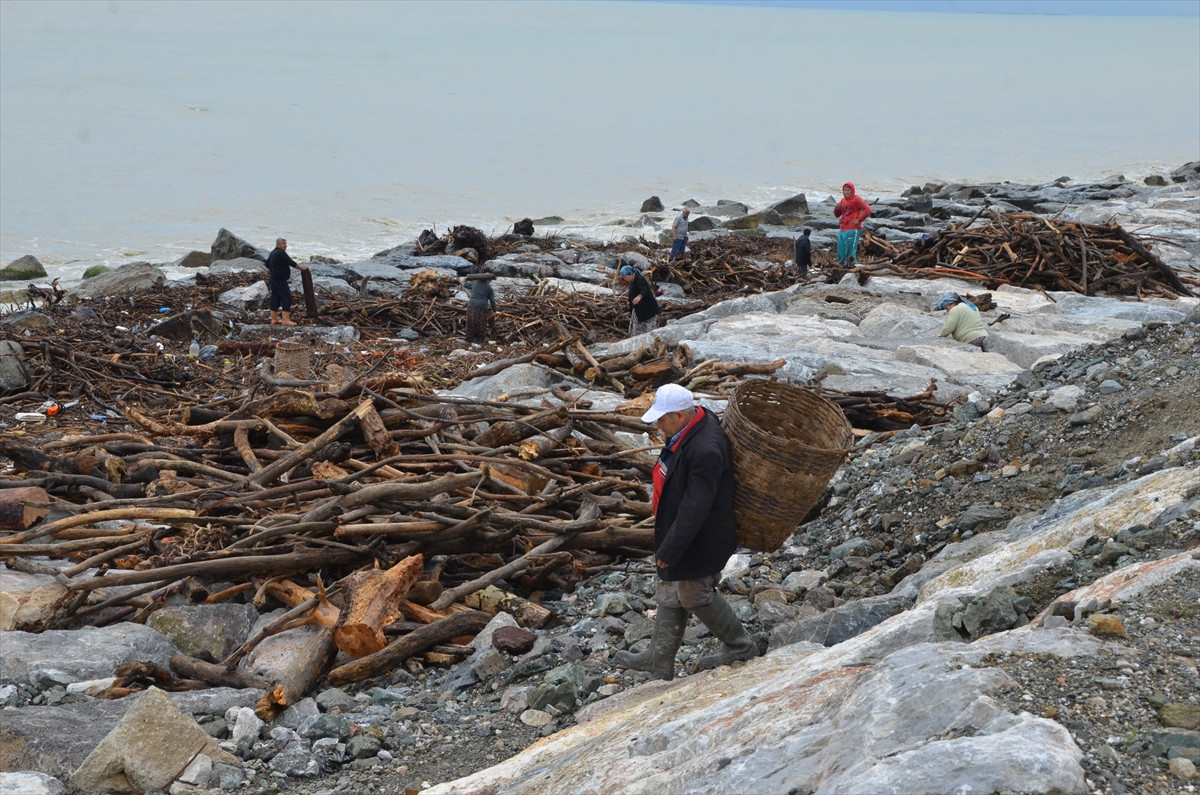 Aydın Sönmez ise denize gelen ağaç ve odunlardan yararlandıklarını ifade ederek, "Hem kirlenen denizi temizlemiş hem de odun toplamış oluyoruz. Keşke sel olmasa, odunlar buraya gelmese ama Allah'ın takdiri, yapacak bir şey yok." diye konuştu.