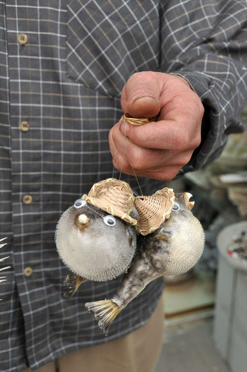Zehirli bir tür olan ancak Türkiye'de evlerde süs eşyası, araçlarda dikiz aynası aksesuarı olarak kullanılan balon balığının kurutulmuşunu Balıkesir'in Ayvalık ilçesindeki Cunda Adası'nda satan Nazen Doğmaç, AA muhabirine yaptığı açıklamada, bu balık türünün ne kadar tehlikeli olduğunun Türkiye'de yeni bilinmeye başlandığını söyledi.