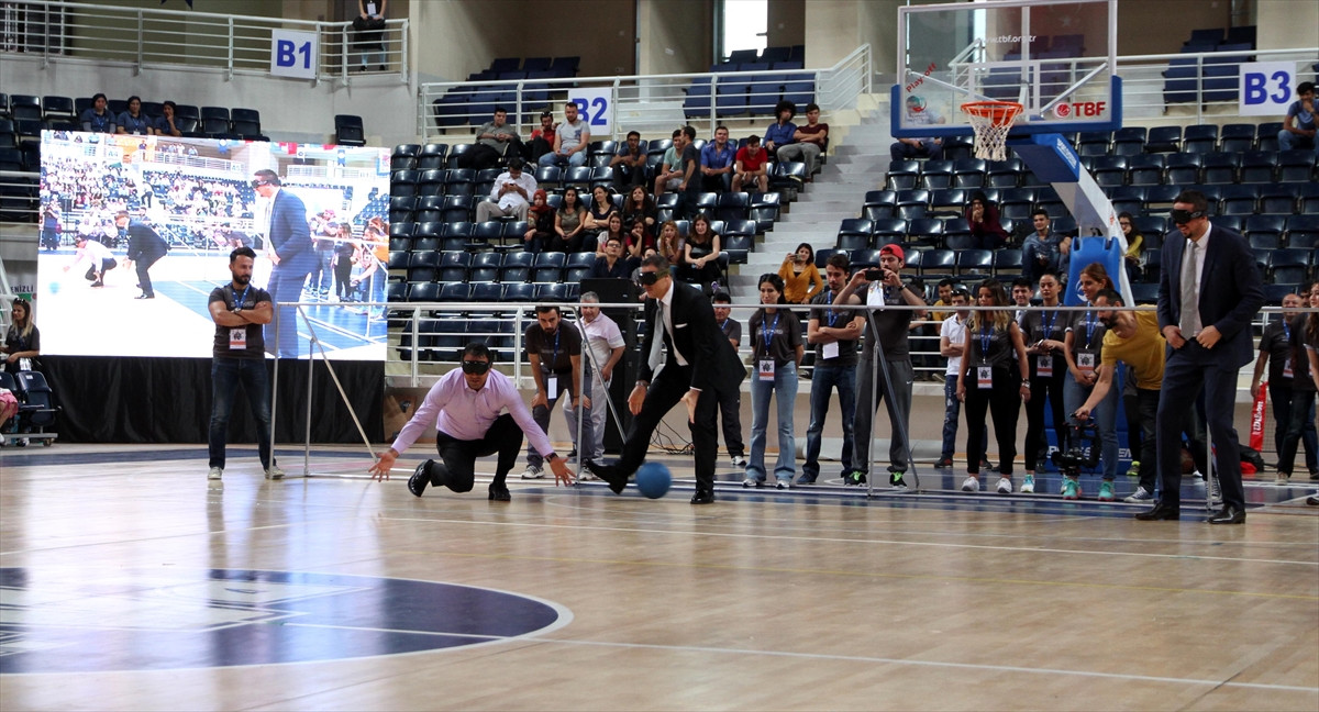Türkoğlu, Yerlikaya ve eski milli futbolcu Alpay Özalan gözlerine bant takarak öğrencilerle goalball oynadı.