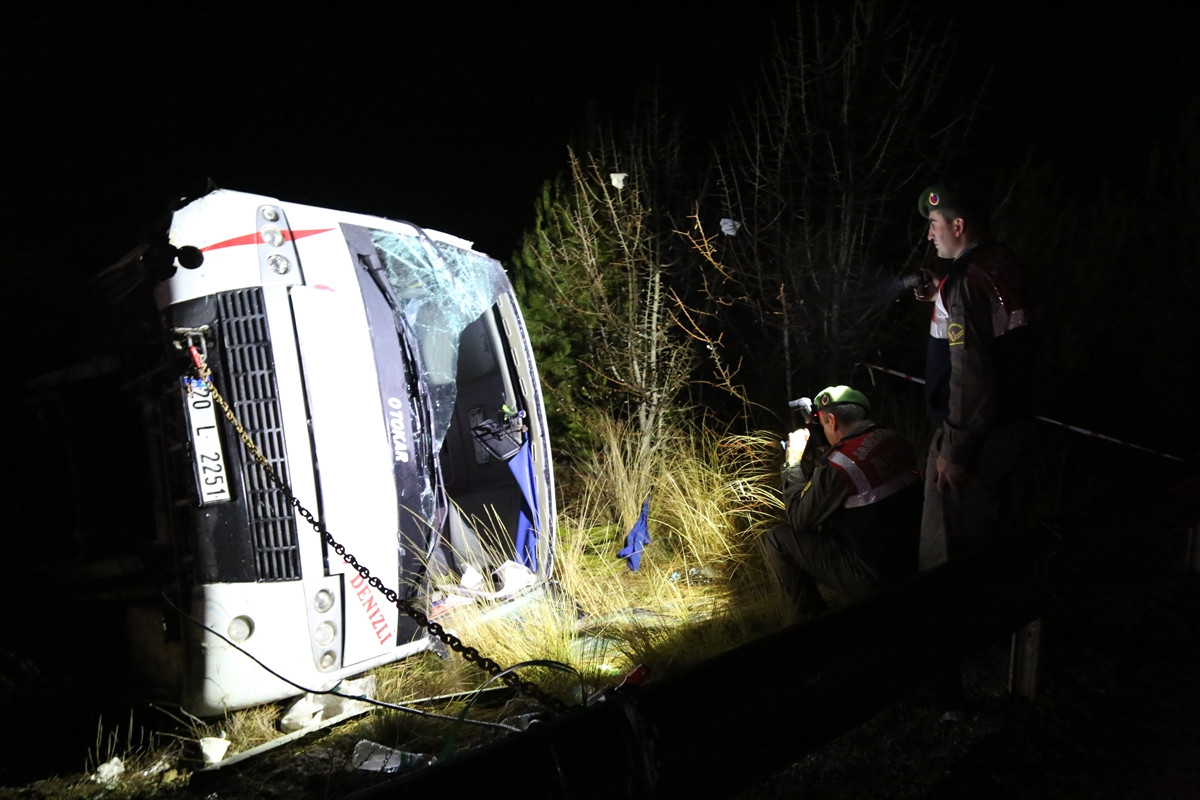 Alınan bilgiye göre, Çivril'den Denizli'ye yolcu taşıyan Ali Kavas (47) yönetimindeki 20 L 2251 plakalı midibüs, Honaz ilçesi Yokuşbaşı Mahallesi yakınlarında kar yağışı nedeniyle kayganlaşan yolda kontrolden çıktı. Yolun sağındaki toprak yığınına çarptıktan sonra yolun sol tarafına geçen midibüs bariyerleri aşarak Şarampole yuvarlandı, ağaçlara çarparak devrildi.