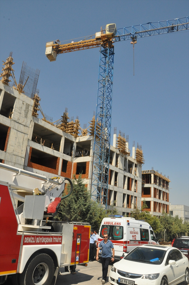 DENİZLİ (AA) - Denizli'nin Merkezefendi ilçesinde adliye hizmet binası inşaatında kullanılan vince çıkan 2 işçi, yüklenici firmadan ücretlerini alamadıkları iddiasıyla eylem yaptı.