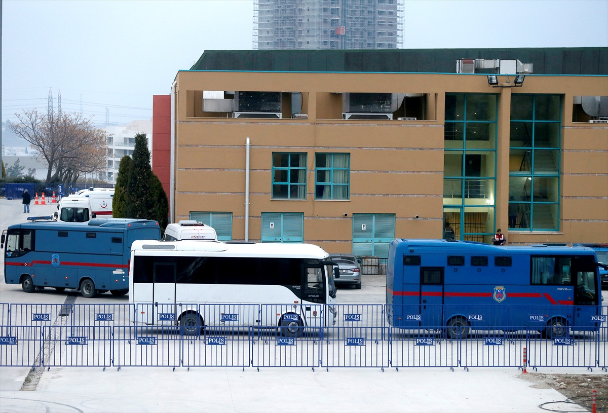 Tutuklu sanıklar ise İzmir 2 nolu F Tipi Yüksek Güvenlikli Cezaevinden geniş güvenlik önlemleri altında duruşmaya getirildi.
