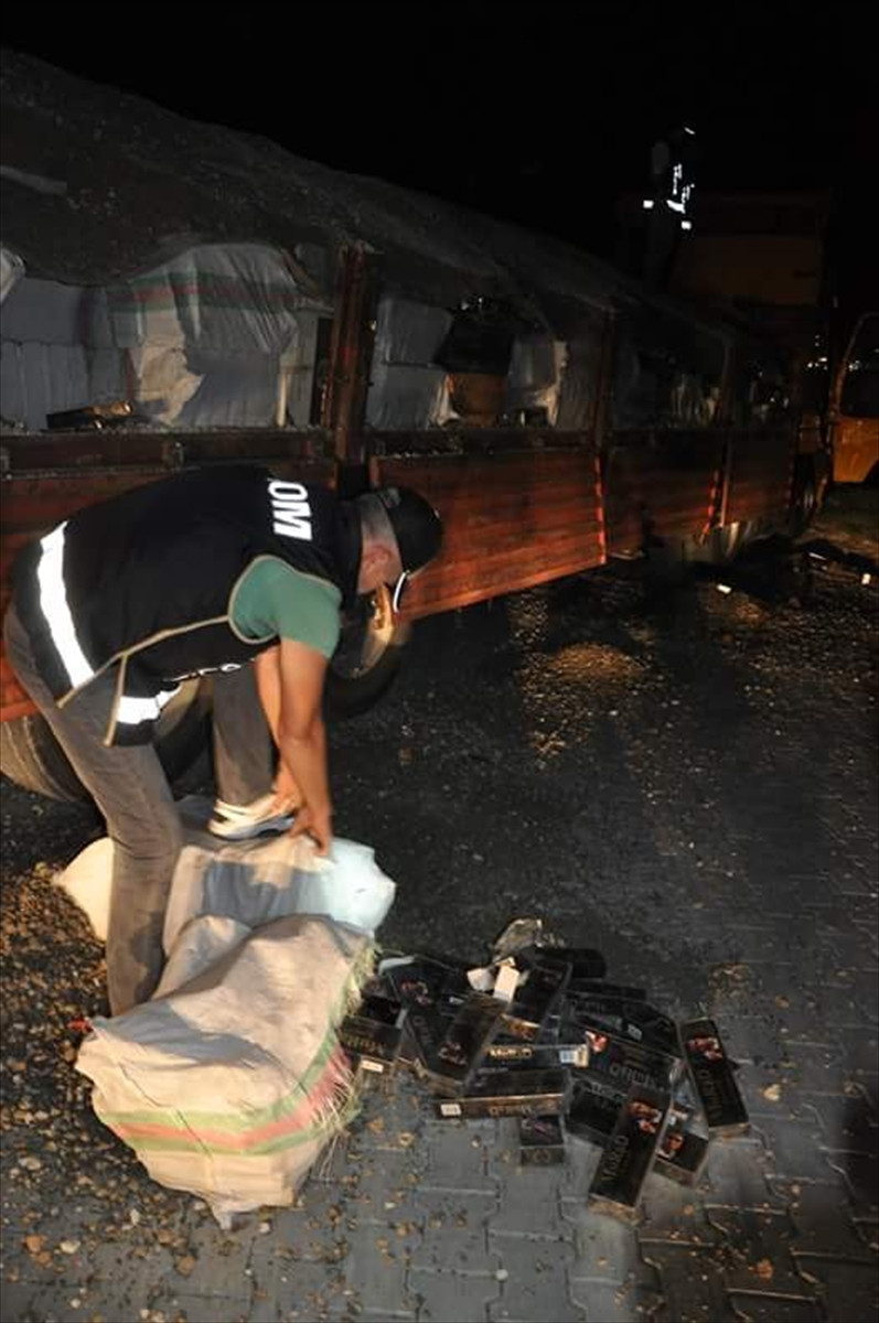 Çalışma sonrası Gümüşler Mahallesi'nde durdurulan tırda ve kum yüklü dorsesinde yapılan aramada, kumun altında gizlenmiş 185 bin paket kaçak sigara ele geçirildi.