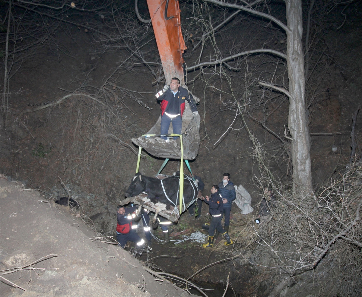 Yaklaşık 15 saat süren çalışmayla kurtarılabilen inek, sahibine teslim edildi.