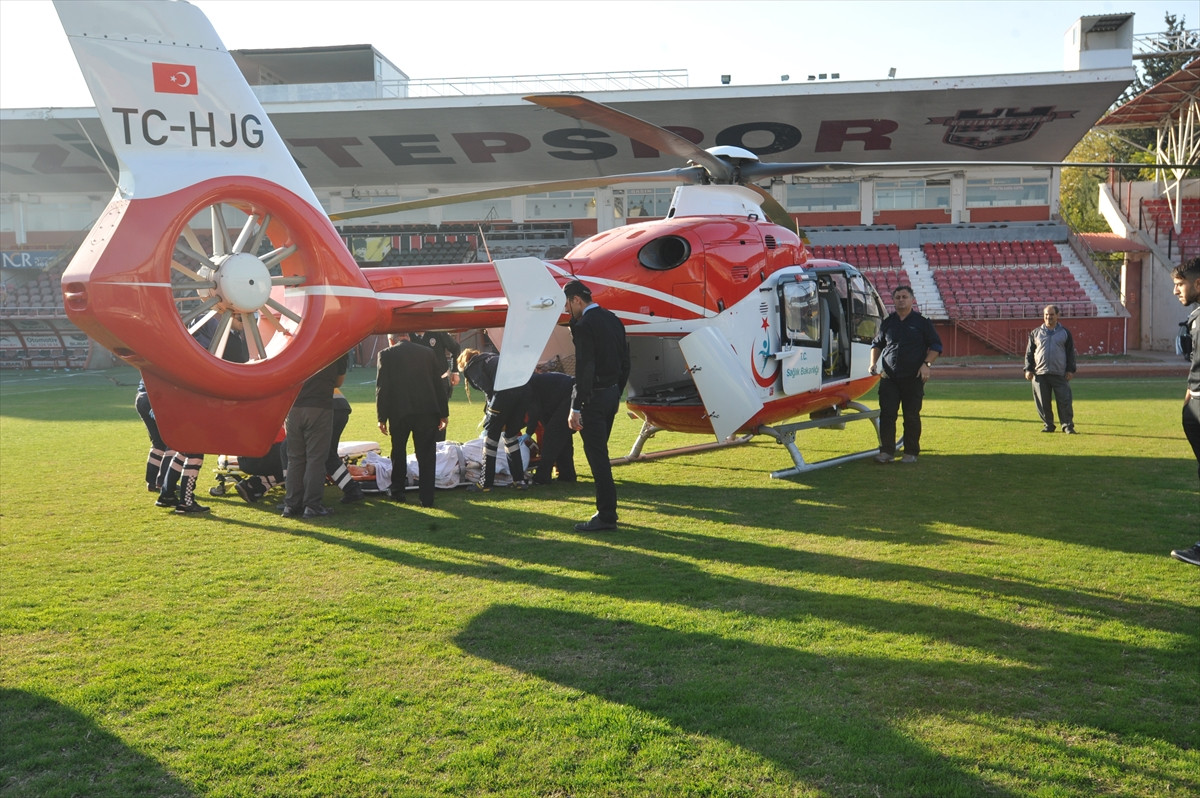 Safitürk'ü Mardin'den alan Sağlık Bakanlığına ait ambulans helikopter, Gaziantep Kamil Ocak Stadı'na indi.