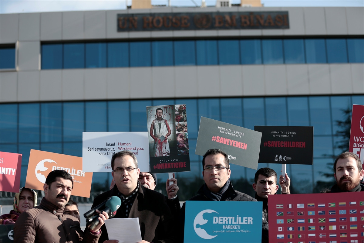ANKARA (AA) - "Dertliler Hareketi" üyeleri, özellikle Müslümanların yoğun olarak yaşadığı ülkelerdeki insanlık trajedilerine duyarsız kaldığı gerekçesiyle Birleşmiş Milletler'i (BM) protesto etti.
