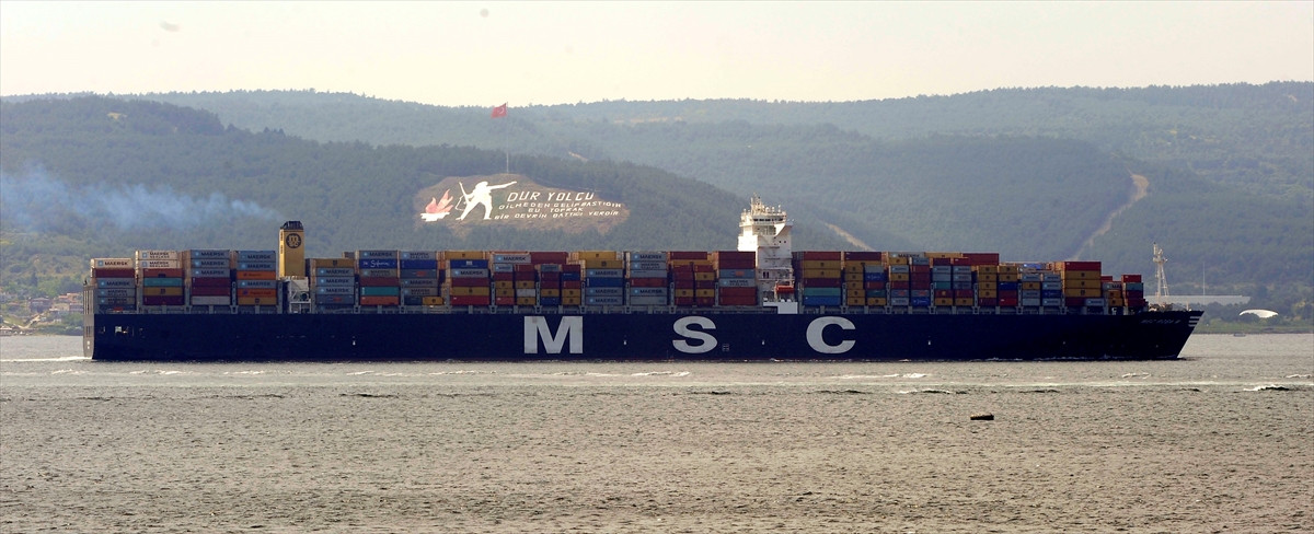 ÇANAKKALE (AA) - Panama bandıralı "MSC Rosa M" adlı dev konteyner gemisi, Çanakkale Boğazı'ndan geçti.