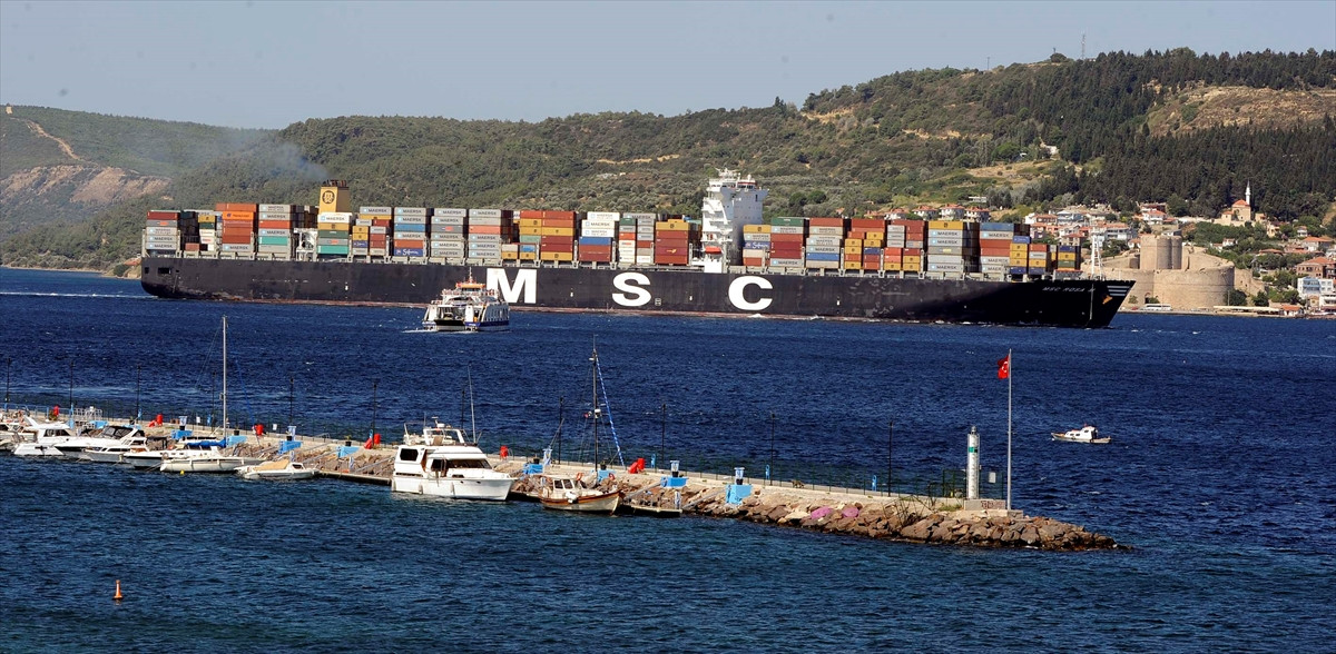 ÇANAKKALE (AA) - Panama bandıralı "MSC Rosa M" adlı 365 metre uzunluğundaki dev konteyner gemisi, Çanakkale Boğazı'ndan geçti.
