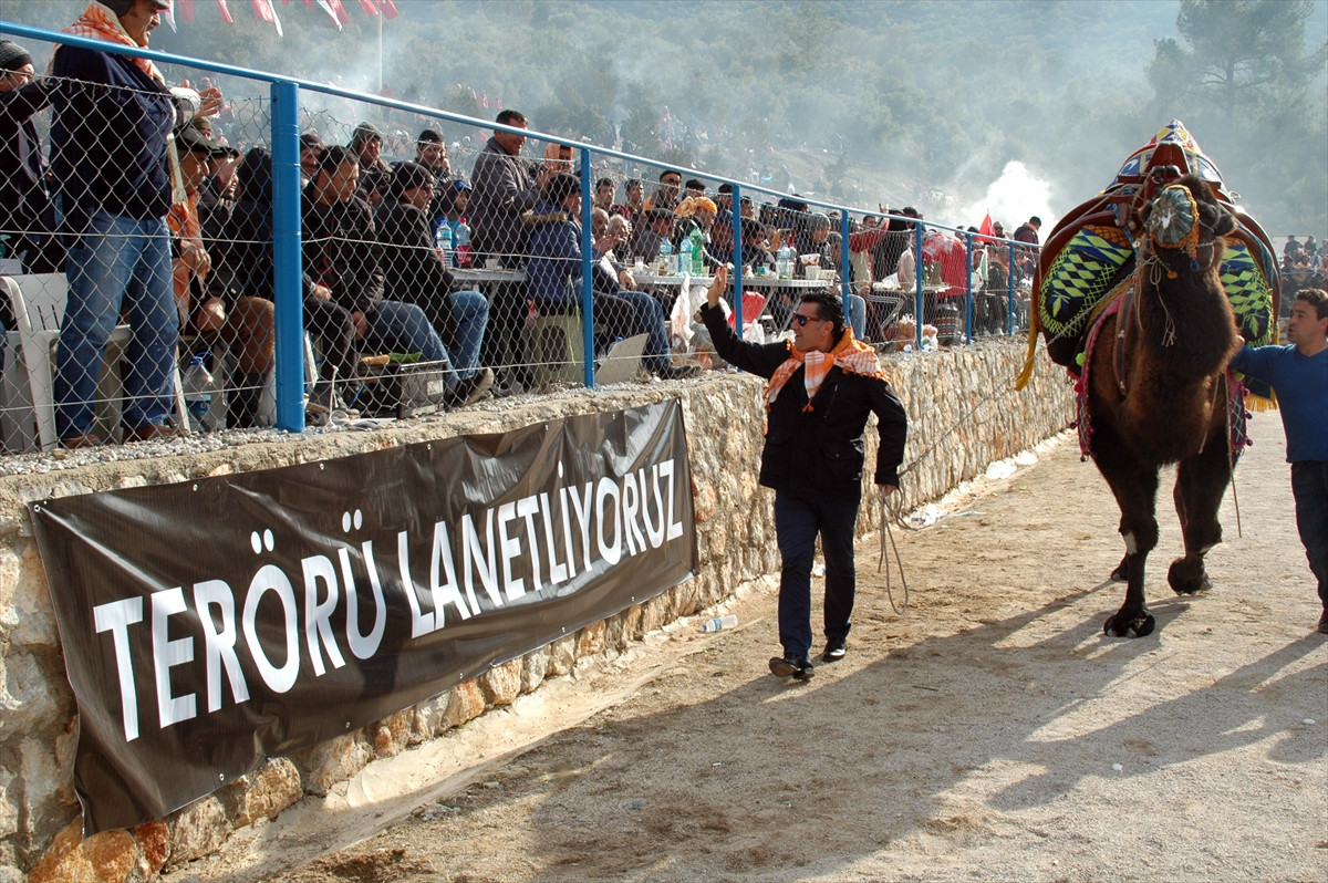 MUĞLA (AA) - Muğla'nın Bodrum ilçesinde, geleneksel deve güreşleri festivalinde terör protesto edildi.