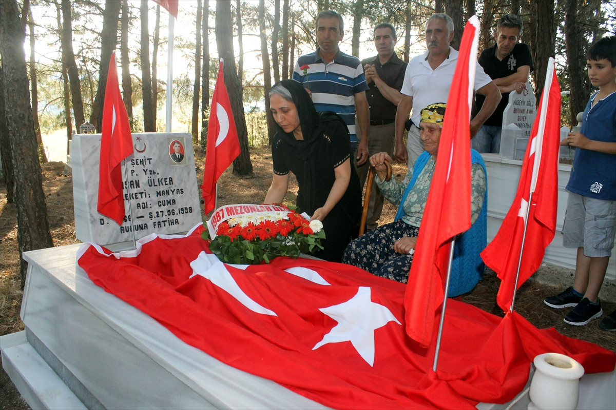 BALIKESİR (AA) - Hakkari'nin Yüksekova ilçesinde 18 yıl önce terör örgütü PKK üyelerinin döşediği mayına basarak şehit olan Yüzbaşı Hasan Ülker'in devre arkadaşları, şehidin Balıkesir'in Manyas ilçesindeki ailesine ve kabrine ziyarette bulundu.
