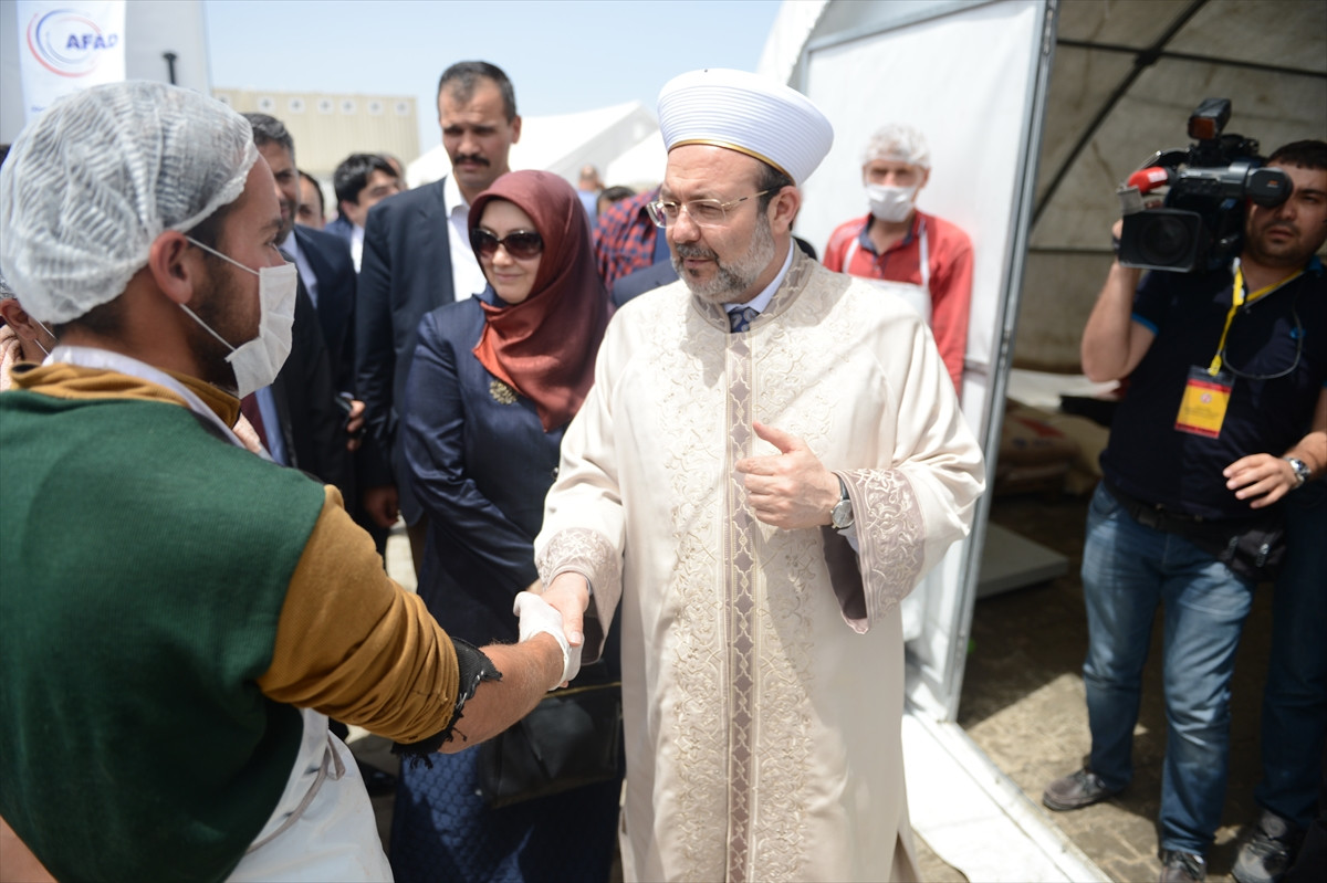 Diyanet Vakfının, kamplarda ve sınırın ötesinde yardım faaliyetlerinin olduğunu anlatan Görmez, "Hayırsever milletimize en kalbi şükranlarımızı sunuyorum. Diyanet Vakfının bu çalışmaları diğer sivil toplum örgütleriyle artarak devam edecek. Kim ne yaparsa yapsın biz millet olarak insanlıkta ve insanlığın vicdanında kalmaya devam edeceğiz. Halkımızın da hiç aldırmadan iyilikte ısrar etmeye devam edeceklerine olan inancım tamdır." diye konuştu.