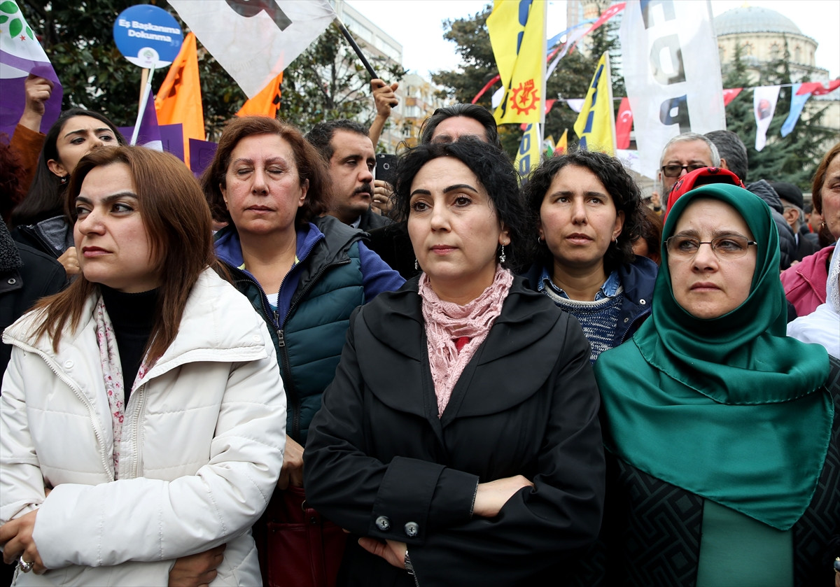 İSTANBUL (AA) - HDP, DBP ve HDK üyeleri, Diyarbakır Büyükşehir Belediye Başkanı Gültan Kışanak ve DBP'li Meclis Üyesi Fırat Anlı'nın gözaltına alınmasını protesto etti.