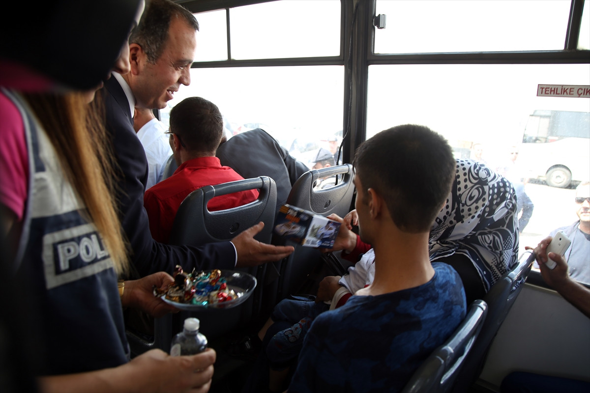 Sürücü ve yolculara kolonya, şeker ve lokum veren, çocuklara da oyuncak hediye eden Taşdan, gazetecilere yaptığı açıklamada, güvenlik önlemlerinin bayramda da sürdürüldüğünü söyledi.