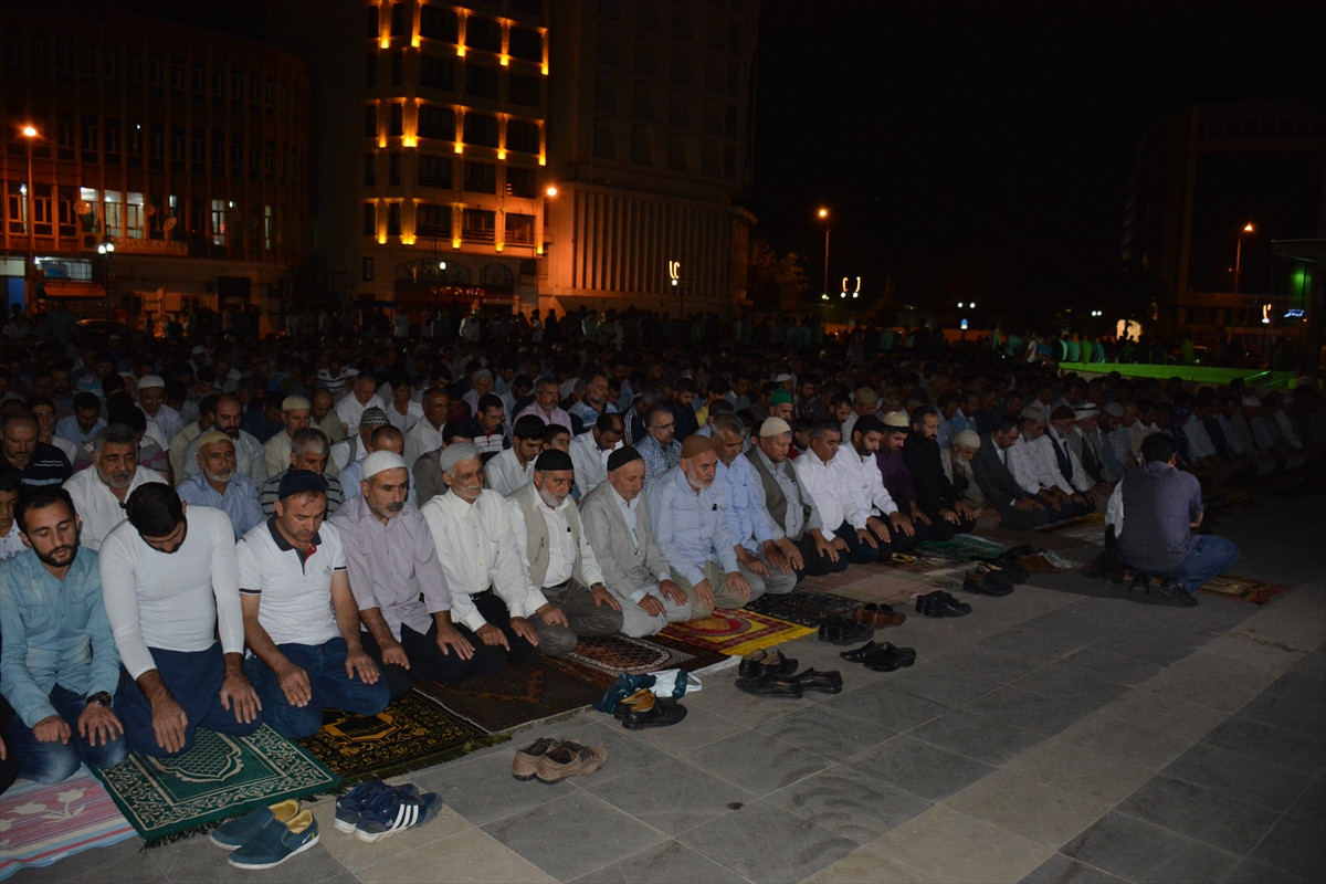 Dağkapı Şeyh Said Meydanı'nda bir araya gelen vatandaşlar, açık alanda kılınan teravih namazının ardından Kudüs için dua etti.