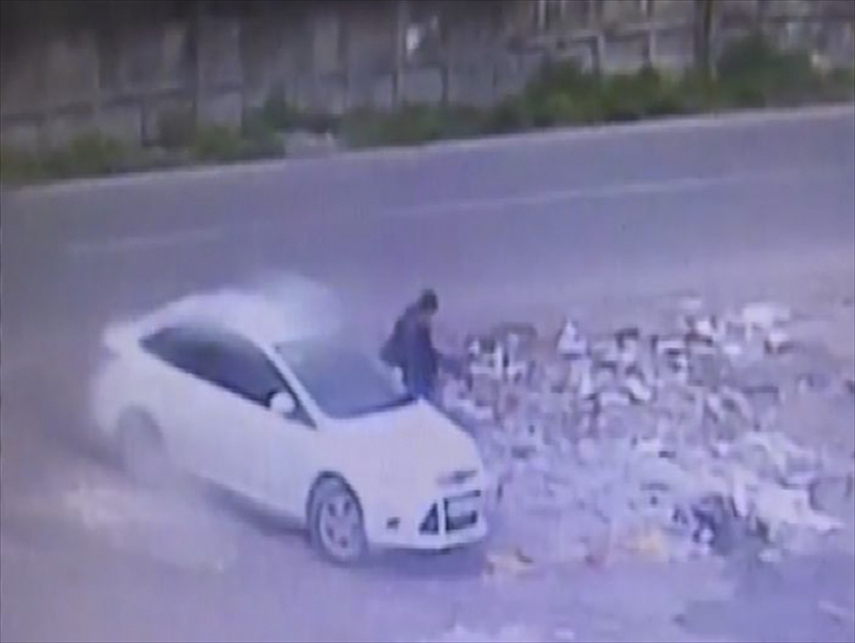 Çevredeki güvenlik kamerasınca kaydedilen görüntüde, olayın gerçekleştiği noktaya beyaz renkte otomobili park eden kişinin araçtan uzaklaşması anı yer alıyor.