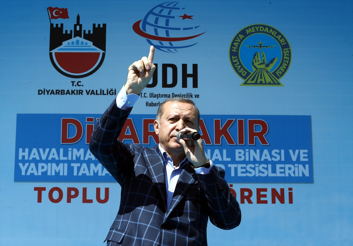 Erdoğan, Anıt Park'ta Diyarbakır Havalimanı yeni terminal binası ve yapımı tamamlanan tesislerin hizmete açılış töreninde yaptığı konuşmada, 2003-2014'te Diyarbakır'a yapılan yatırımların toplam tutarının 24 milyar lira olduğunu belirterek, son 1,5 yılda terör olayları sebebiyle yapılan yatırımlarla birlikte bu tutarın 30 milyar lirayı bulduğunu, yatırımların devam edeceğini söyledi.