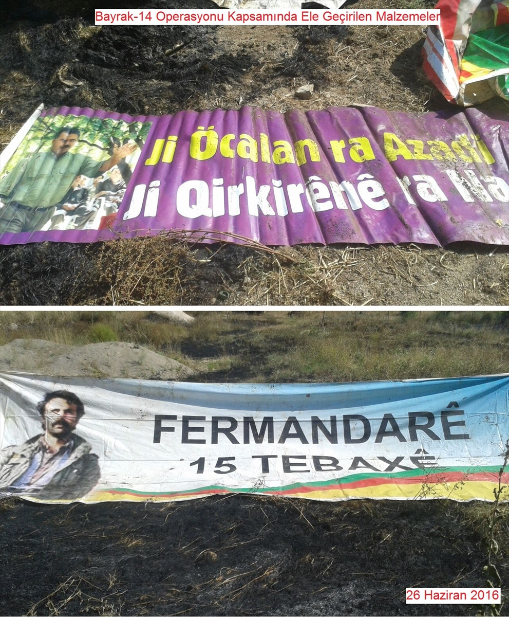 "Lice ilçesi Yolçatı köyünde bulunan sözde 'terörist mezarlığı' bölgesinde ve etrafındaki kırsal alanda tespit edilen sığınak, depo ve barınaklarda el yapımı patlayıcı yapımında kullanılmak üzere hazırlanan 3 tüp, 2 sokak lamba kafası, çok sayıda demir saç, spiral taşı, elektrot çubukları, 302 boru tipi demir dış kap, 20 kilogram inşaat çivisi, 3 kalem muhtelif cins ve miktarda araç gereç, çok sayıda pil, 10 çuval 50 kilogramlık şeker, 19 torba 4 kilogramlık beyaz renkli karışım, akü, 12 köpük, boya malzemeleri, yangın söndürme tüpü ile çok sayıda muhtelif cins ve miktarda giysi, 3 örgüt kıyafeti, 3 tenekede 10 kilogram tiner, muhtelif cins ve miktarda yaşam malzemesi, 2 rulo halinde ip, bölücü terör örgütü mensuplarının barınma amaçlı kullandığı değerlendirilen çadır ve ekipmanlar, çok sayıda örgütsel afiş, örgütsel doküman, sağlık malzemeleri ve sırt çantası ele geçirildi."