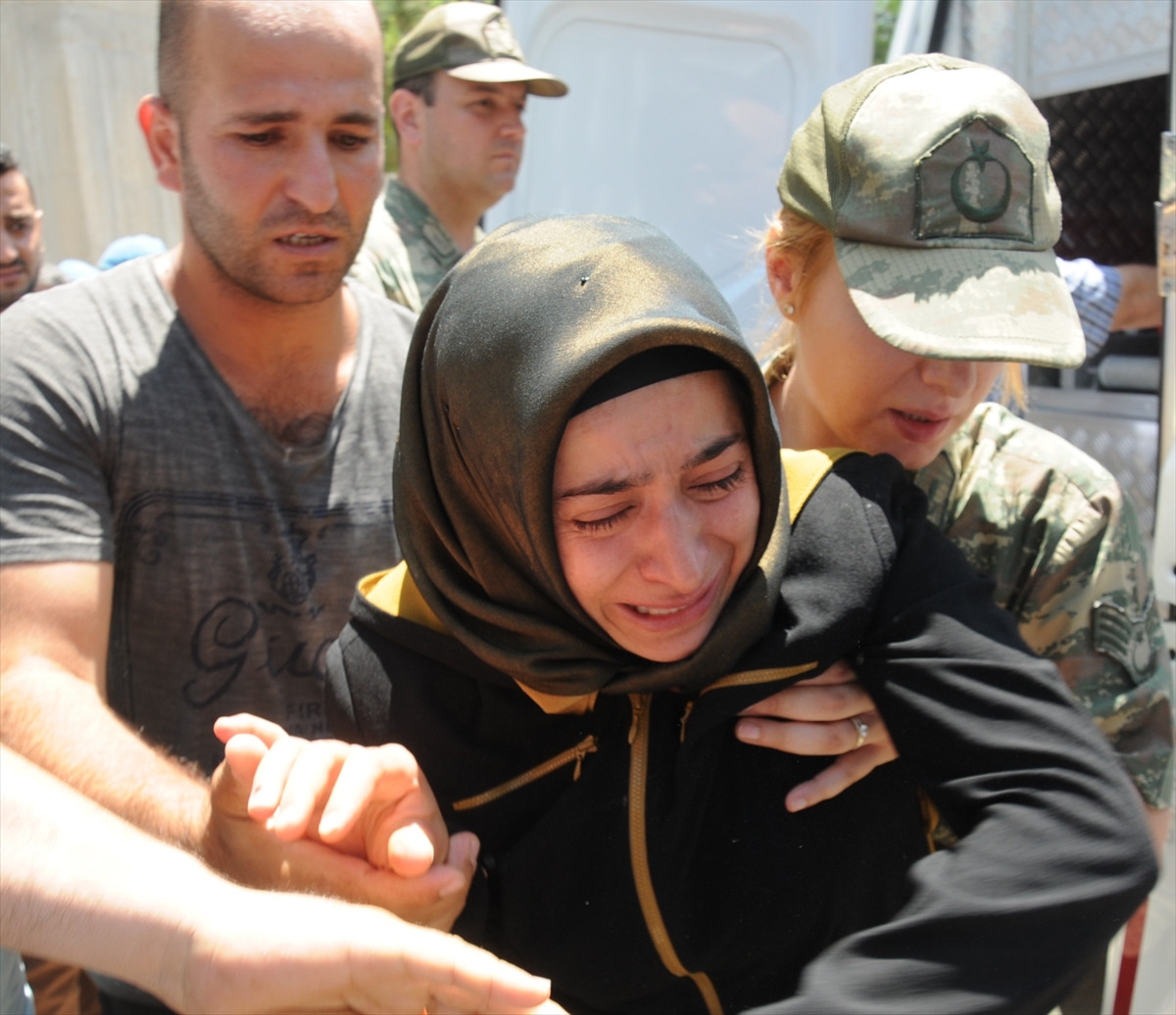 Şehidin eşi Şerife Avcı ve bazı yakınları tabuta sarılarak Kürtçe ve Türkçe ağıt yaktı, anne Maşallah Avcı sinir krizi geçirdi.