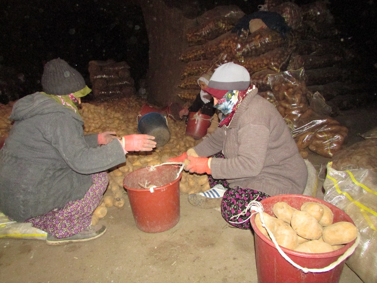 Yazın serin olan, kışın da sıcaklığını koruyan doğal depolarda kadın işçiler tarafından hazırlanan patatesler, başta İstanbul pazarı olmak üzere Türkiye'nin çeşitli illerine gönderiliyor.
