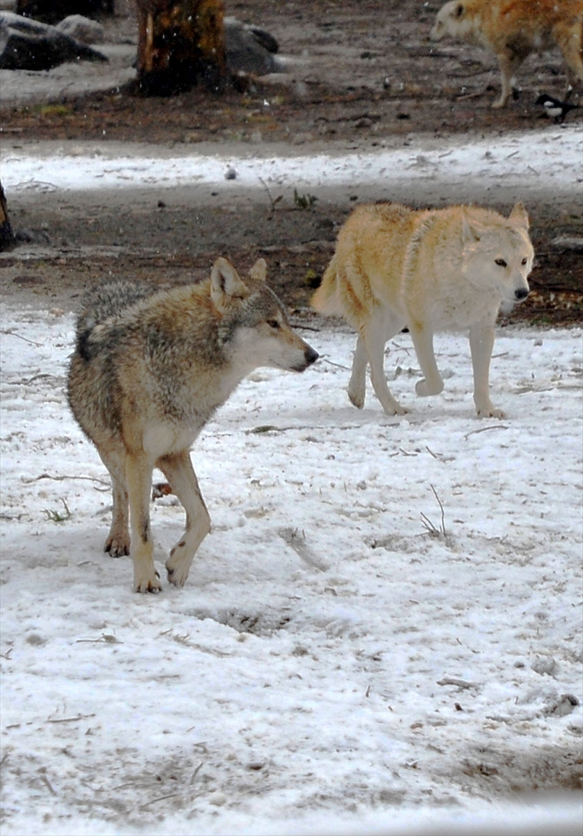 Kar yağışının ardından kafeslerinden çıkan hayvanlar, beyaz örtüyle kaplı zeminde dolaştı.