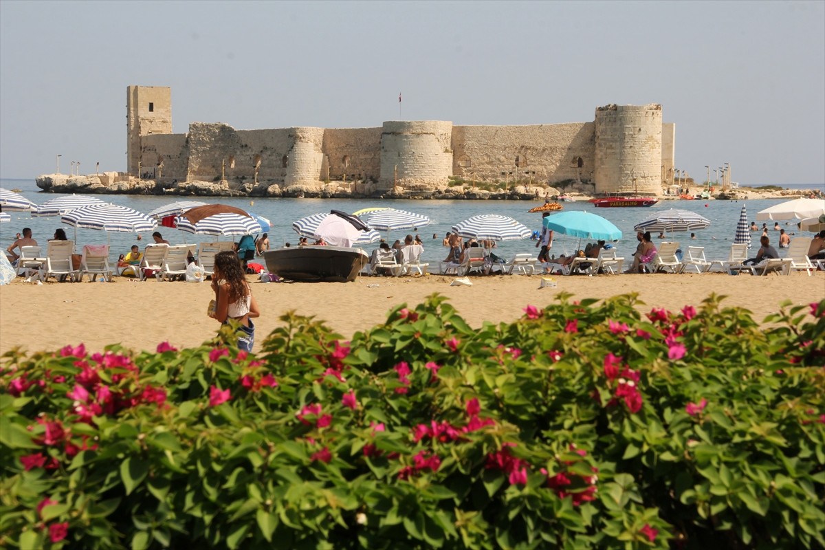 Kentin UNESCO Dünya Miras Geçici Listesi'nde yer alan turizm merkezi Kızkalesi'nde sıcak havanın etkisiyle yoğunluk yaşandı, vatandaşlar denize girerek vakit geçirdi.