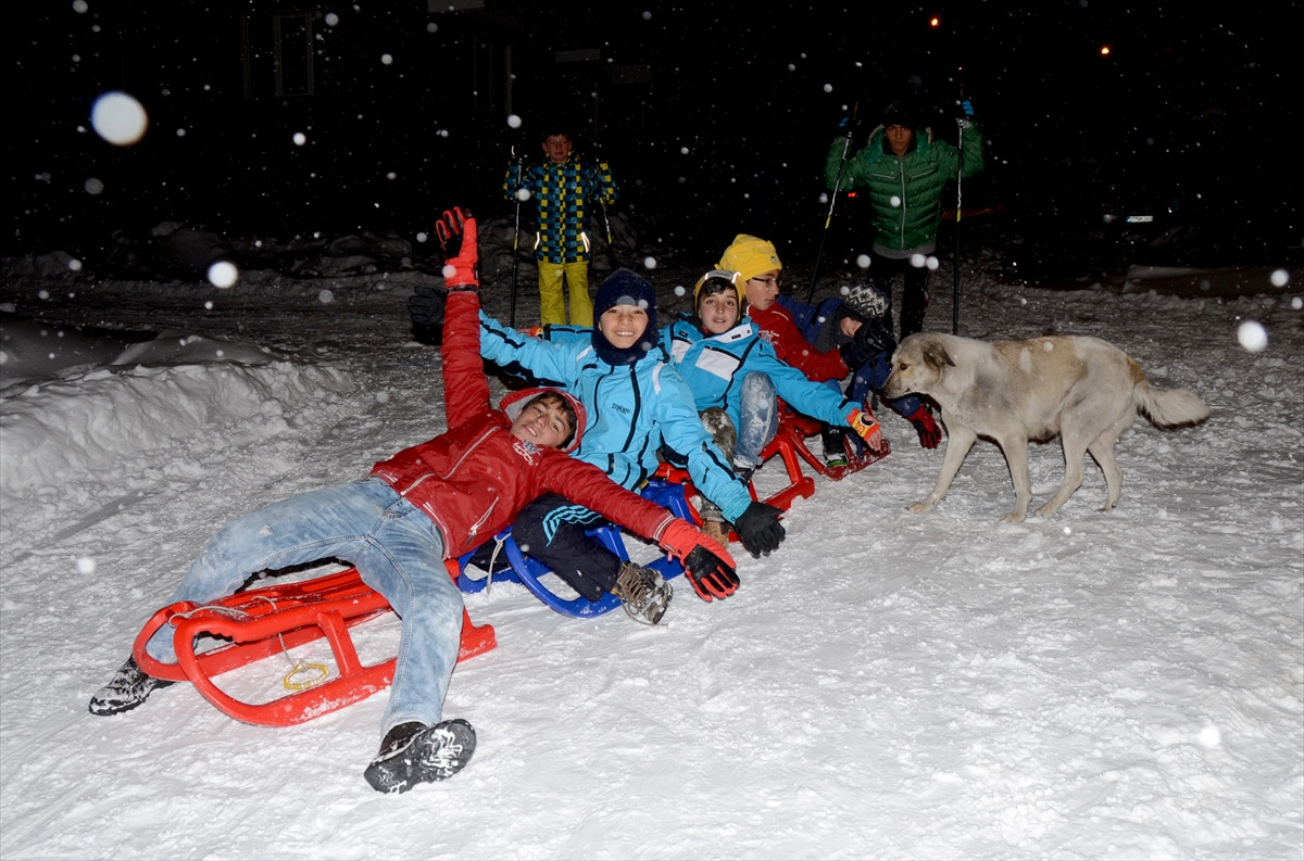 Bu açıklamanın ardından cadde ve sokaklara çıkan öğrenciler, kayak, kızak, bidon ve plastik gibi malzemelerle kayarak gönüllerince eğlendi.