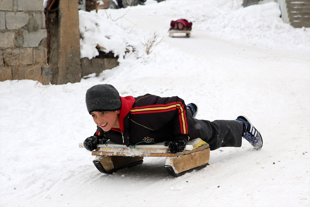 Çocuklardan Emre Can Kurt, arkadaşlarıyla kızak kayarak eğlendiklerini belirterek, "Kar yağdı mutluyuz, okuldan gelip kızakla kayıyoruz. Çok eğlenceli vakit geçiriyoruz. Kartopu oynadık, kardan adam yaptık." dedi.