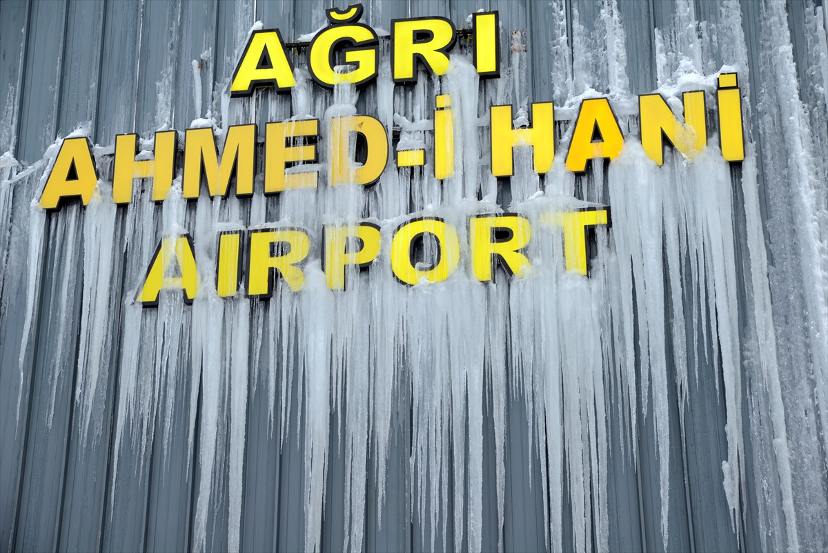 Hava sıcaklığının sıfırın altında 16 derece ölçüldüğü Ağrı'nın Eleşkirt ilçesinde de soğuk hava sebebiyle ev, iş yeri ve araçların camları buz tuttu, çatılarda buz sarkıtları oluştu.