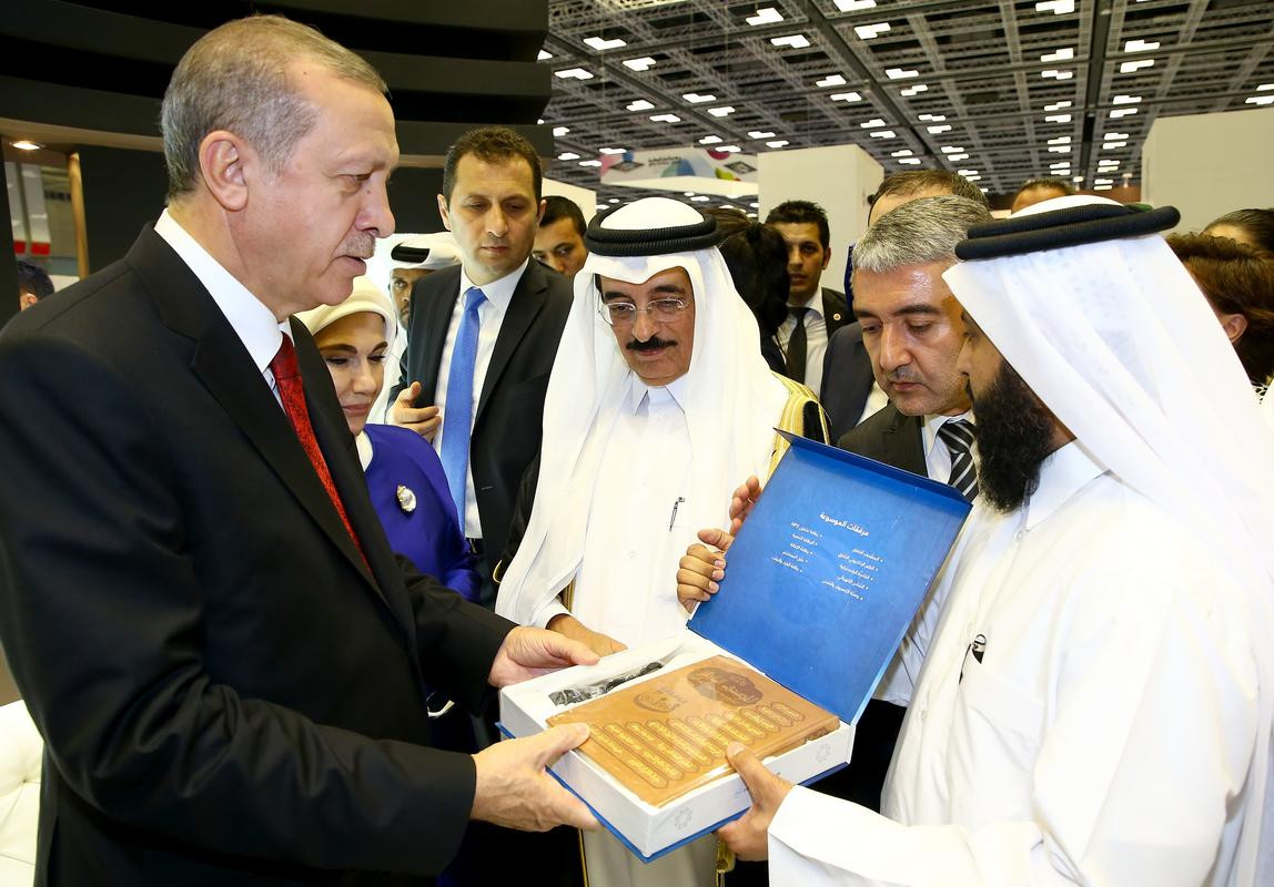 Erdoğan, Katar Kültür, Sanat ve Kültürel Miras Bakanı Hamad Bin Abdulaziz Al Kawari ile birlikte fuarın açılış kurdelesi ile üzerinde Türkiye ve Katar bayraklarının bulunduğu pastayı kesti.