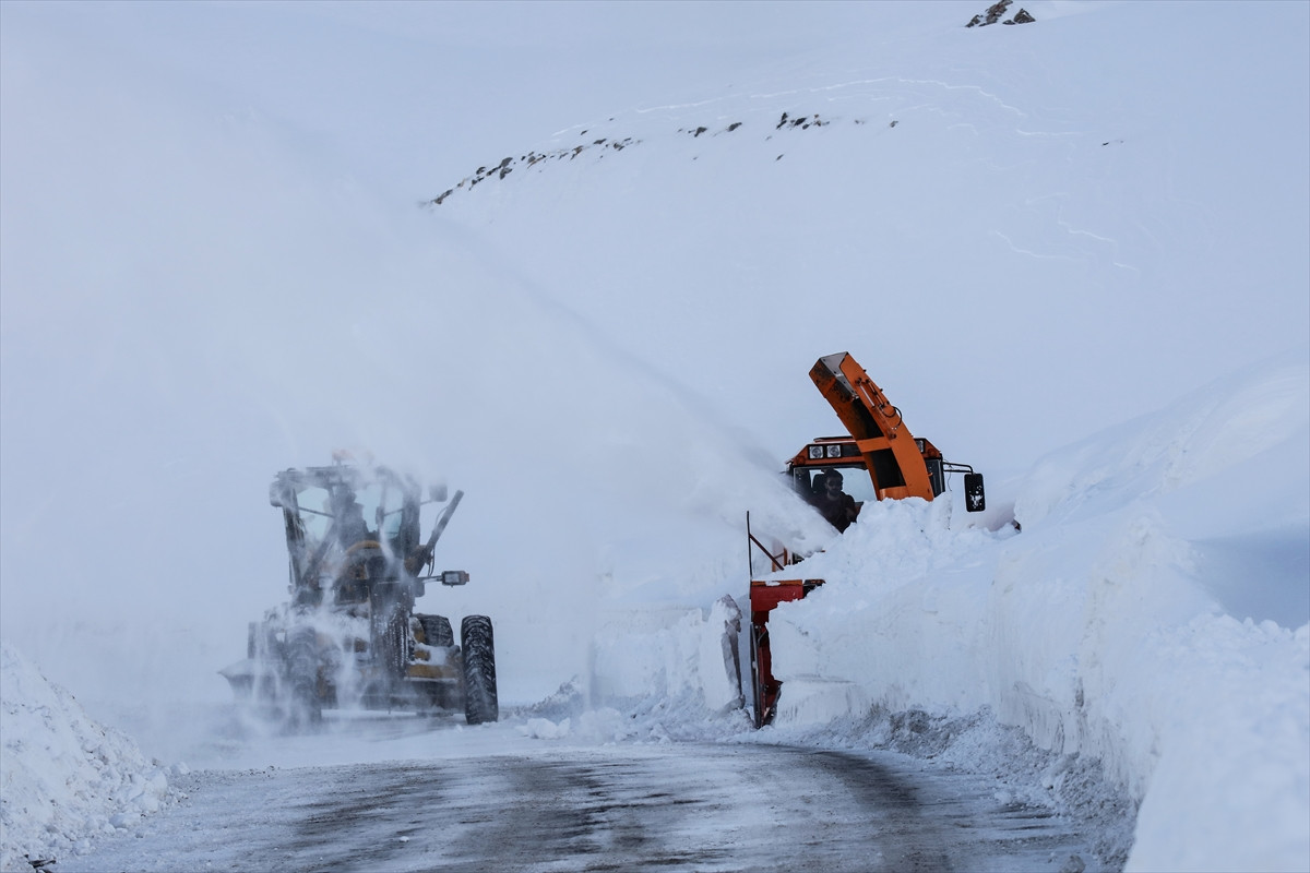 Bölgede uzun süren çetin kış nedeniyle "Dokuzuncu gezegen" olarak bilinen ilçenin 2 bin 985 rakımlı Karabet Geçidi'nde, 17 iş makinesi ve 34 kişilik ekip karla mücadele çalışmalarını sürdürüyor.