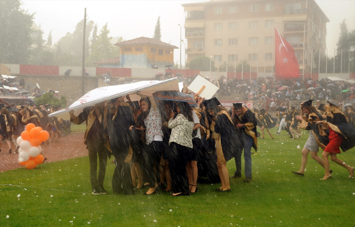 BİLECİK (AA) - Bilecik'te ceviz büyüklüğünde yağan dolu ile etkili sağanak nedeniyle Şeyh Edebali Üniversitesi tarafından Edebali Stadı'nda düzenlenen mezuniyet töreni yarıda kaldı.