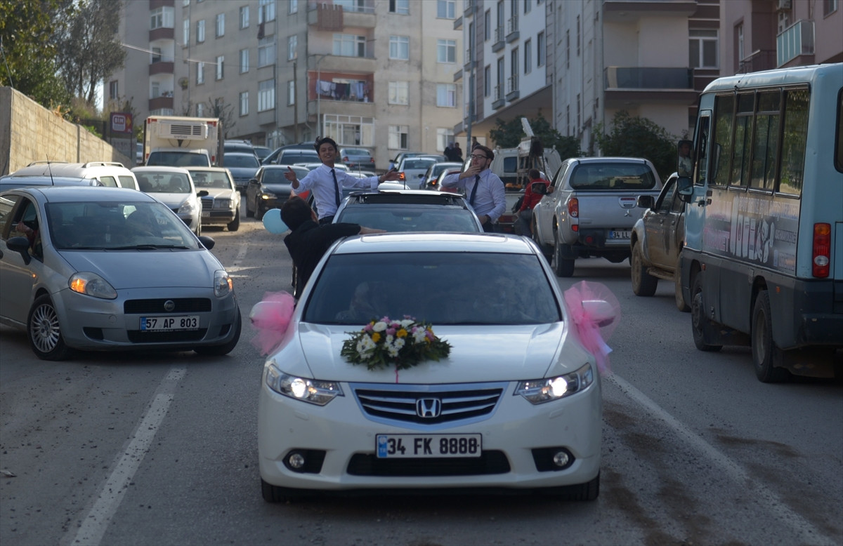 Evlerinin önündeki eğlencenin ardından konvoy eşliğinde Sinop Belediyesi Aşıklar Düğün Salonu'na getirilen Eriş için yapılan organizasyona vatandaşlar da yoğun ilgi gösterdi.