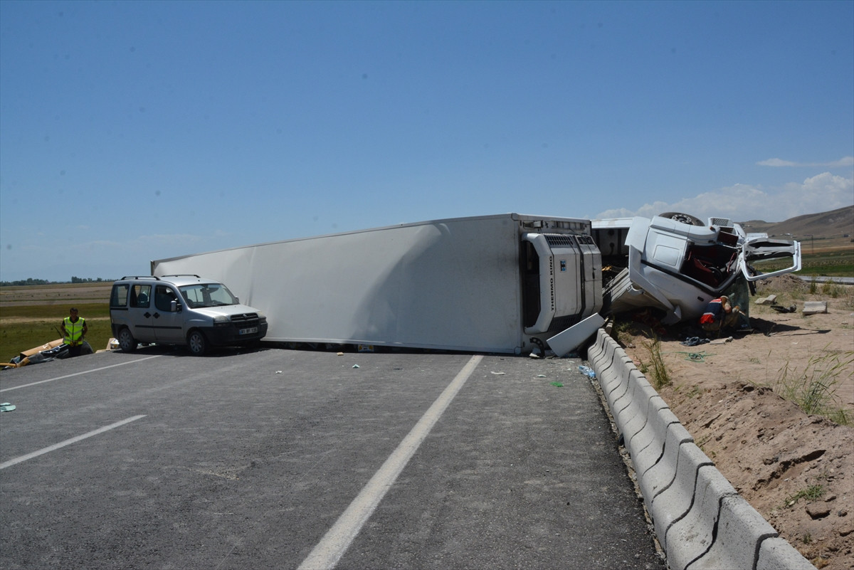 Tırın yan yatması sonucu kapanan yol, ekiplerin çalışmasıyla tek şeritten ulaşıma açıldı.